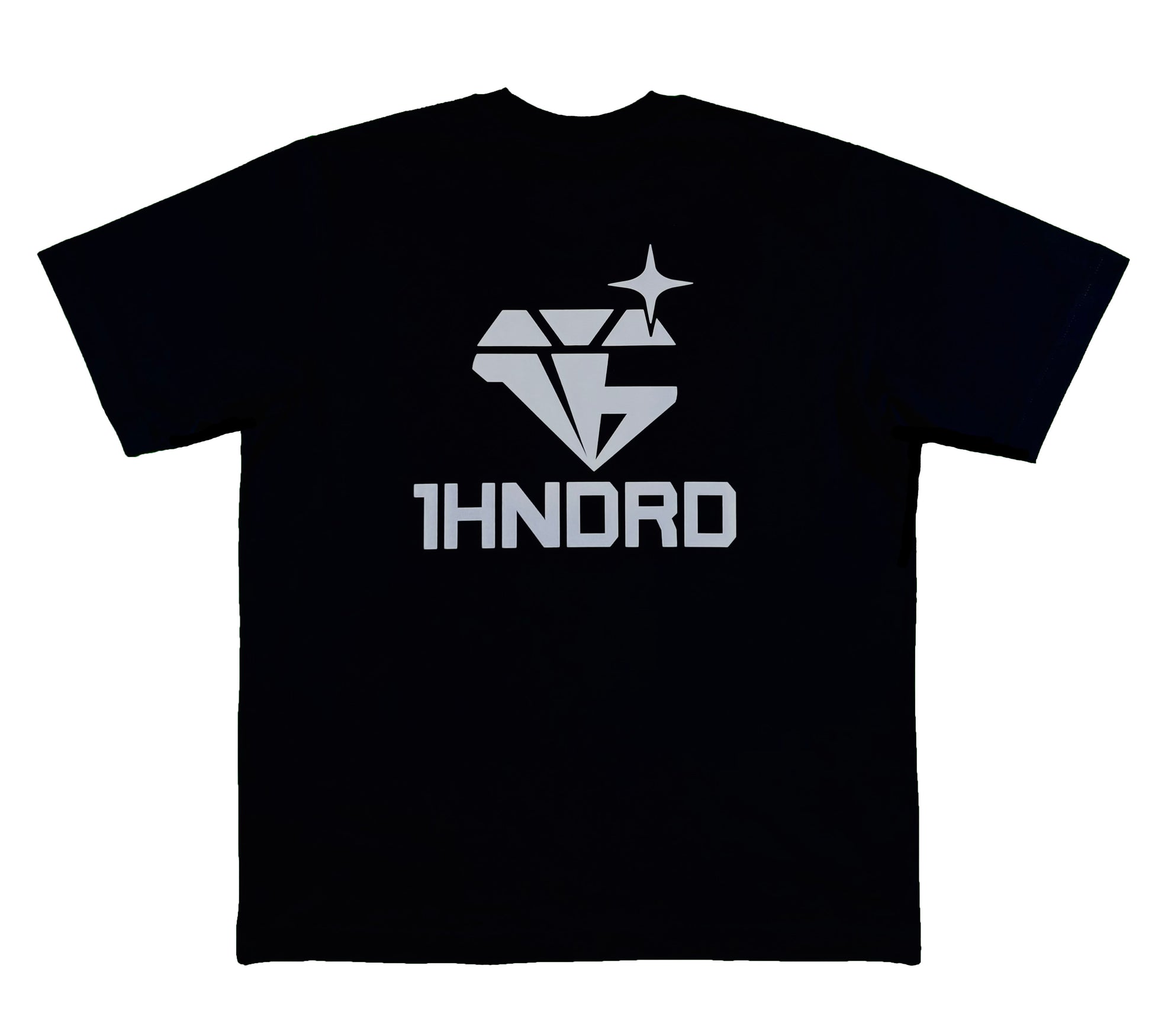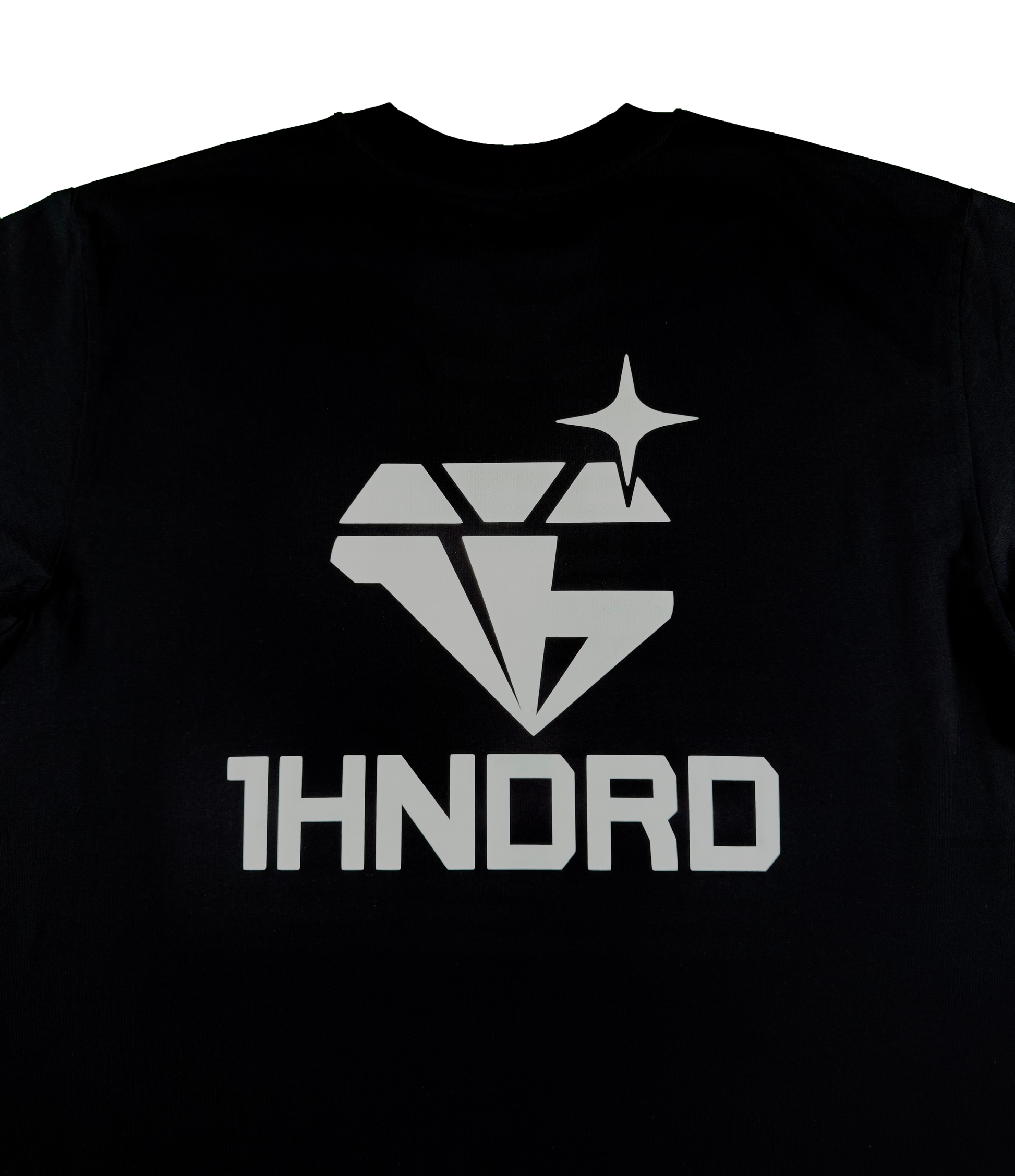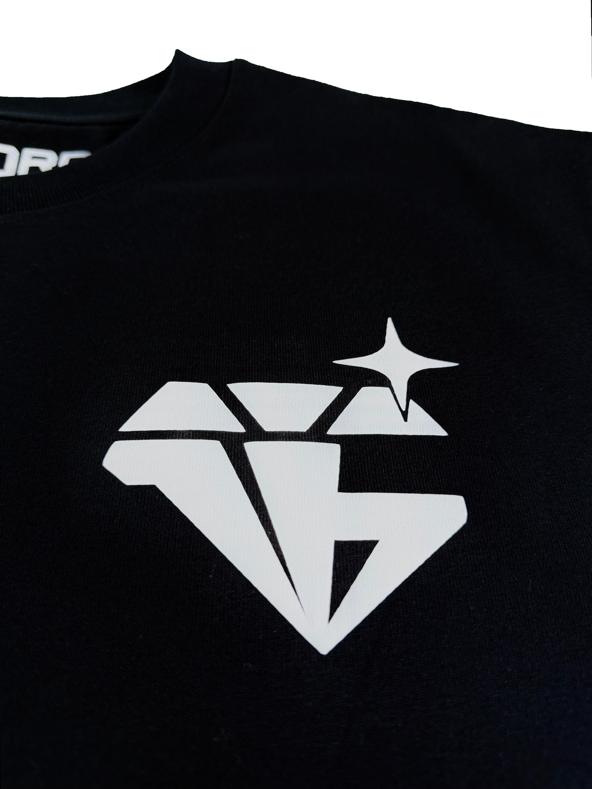 Relaxed black T-Shirt featuring white diamond logo on front and full logo on back.