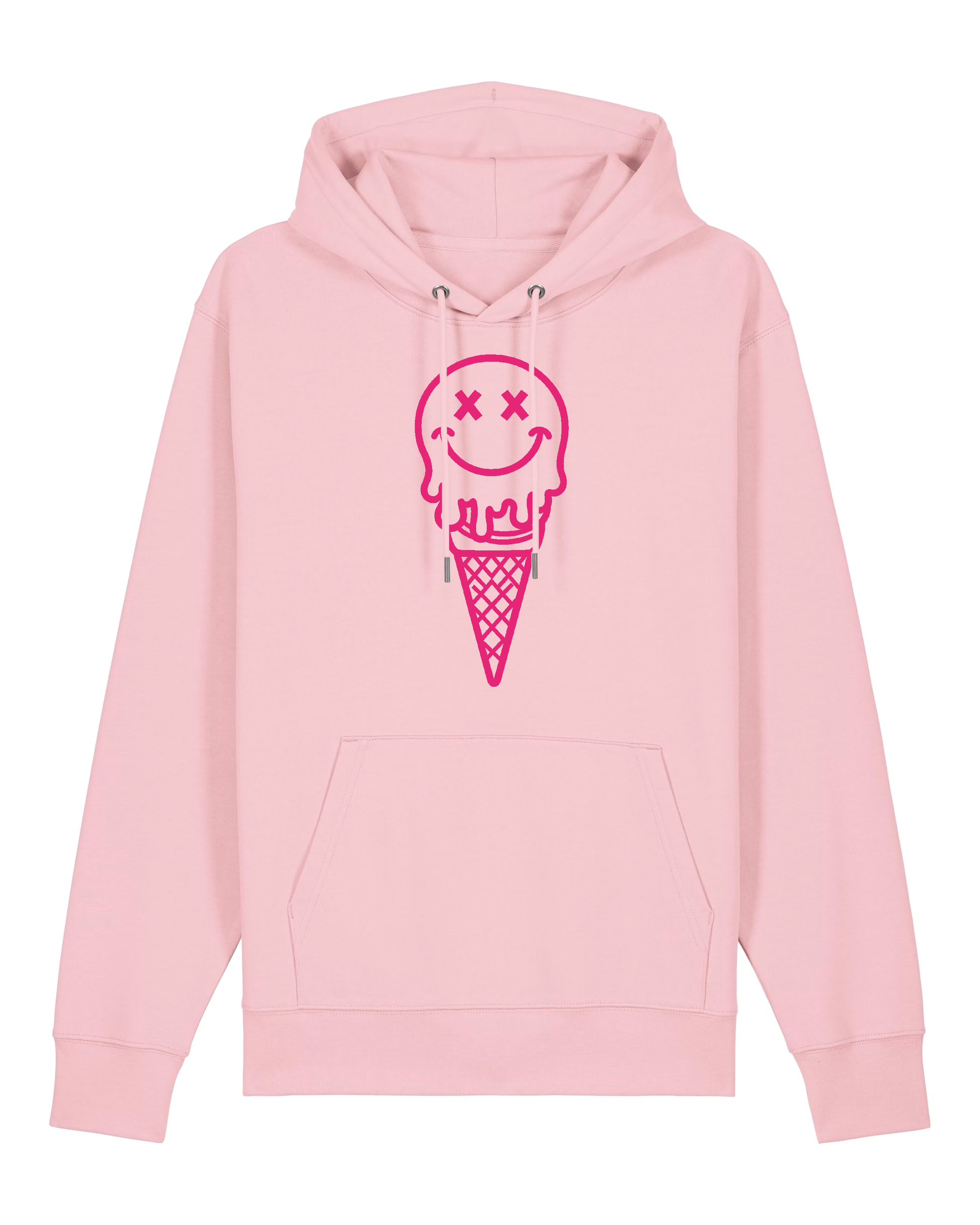 Candy Pink Hoodie with Neon Pink Cone Head graphic front and back,