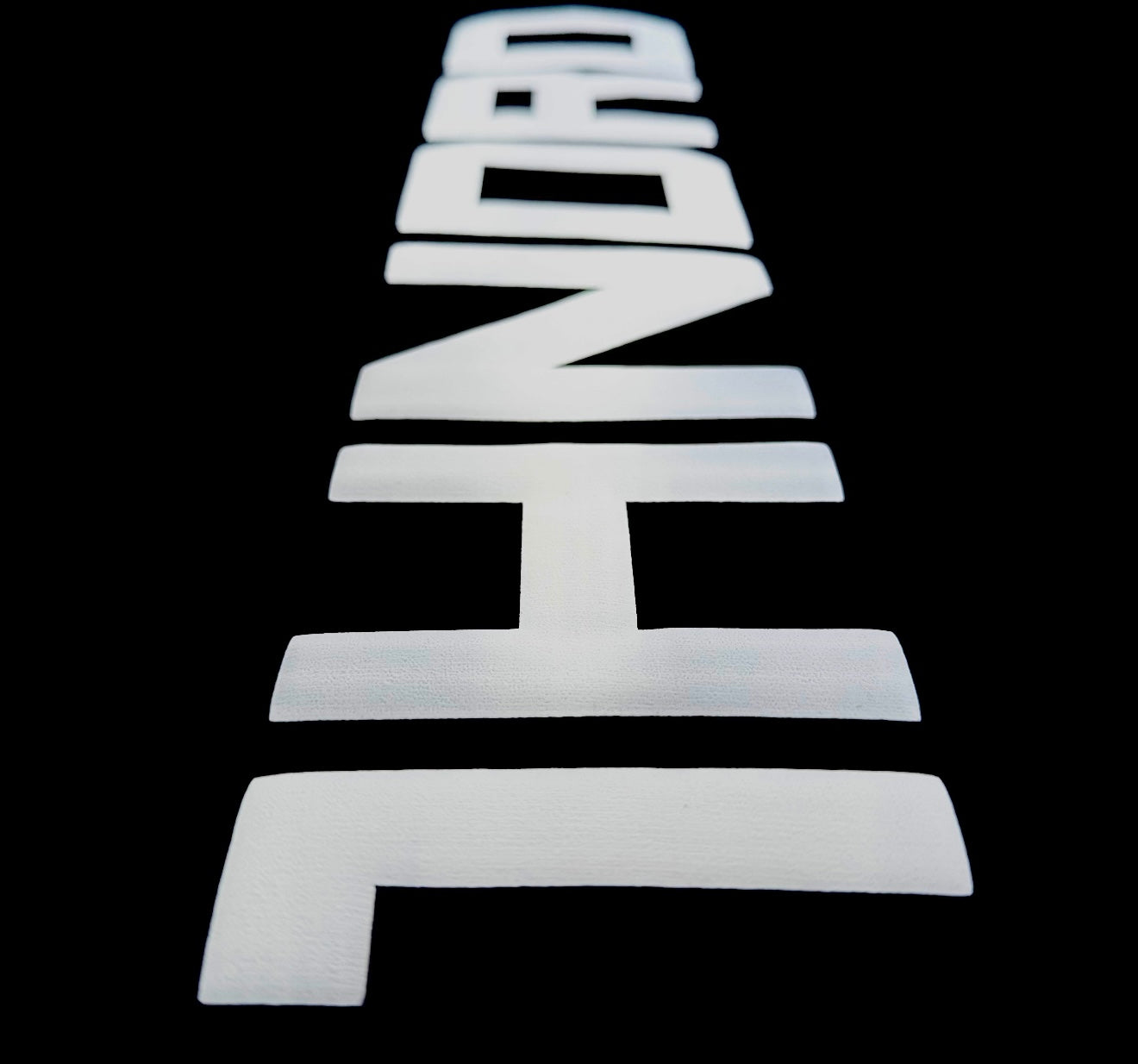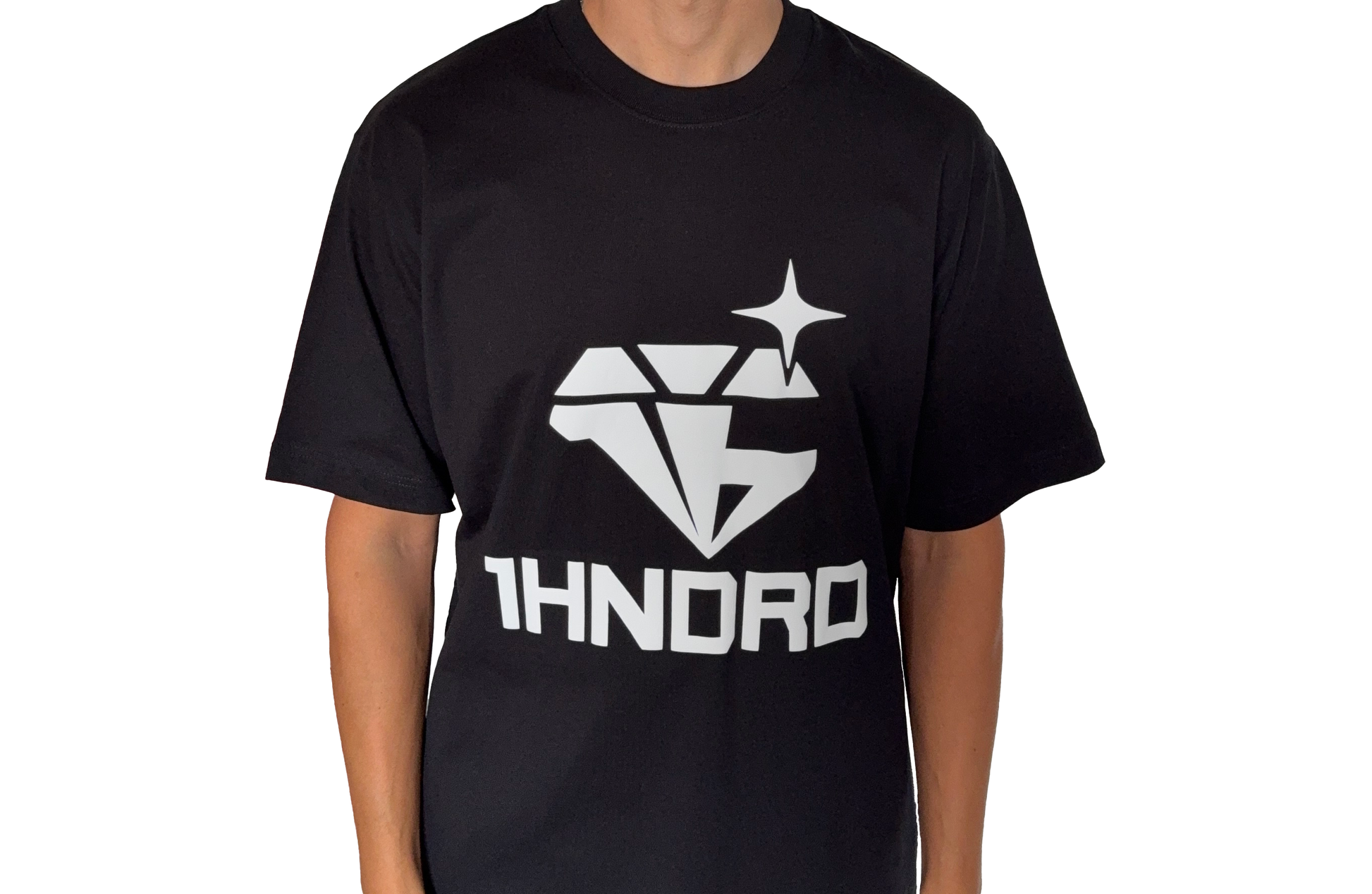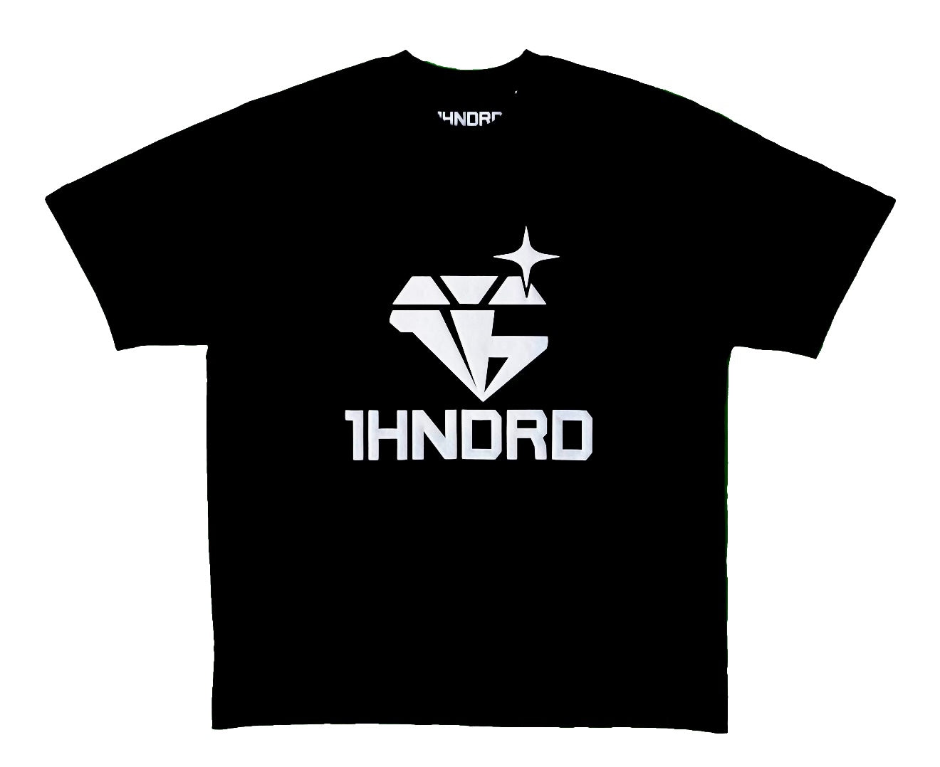 Relaxed black T-Shirt featuring white diamond emblem on front and large font on back.