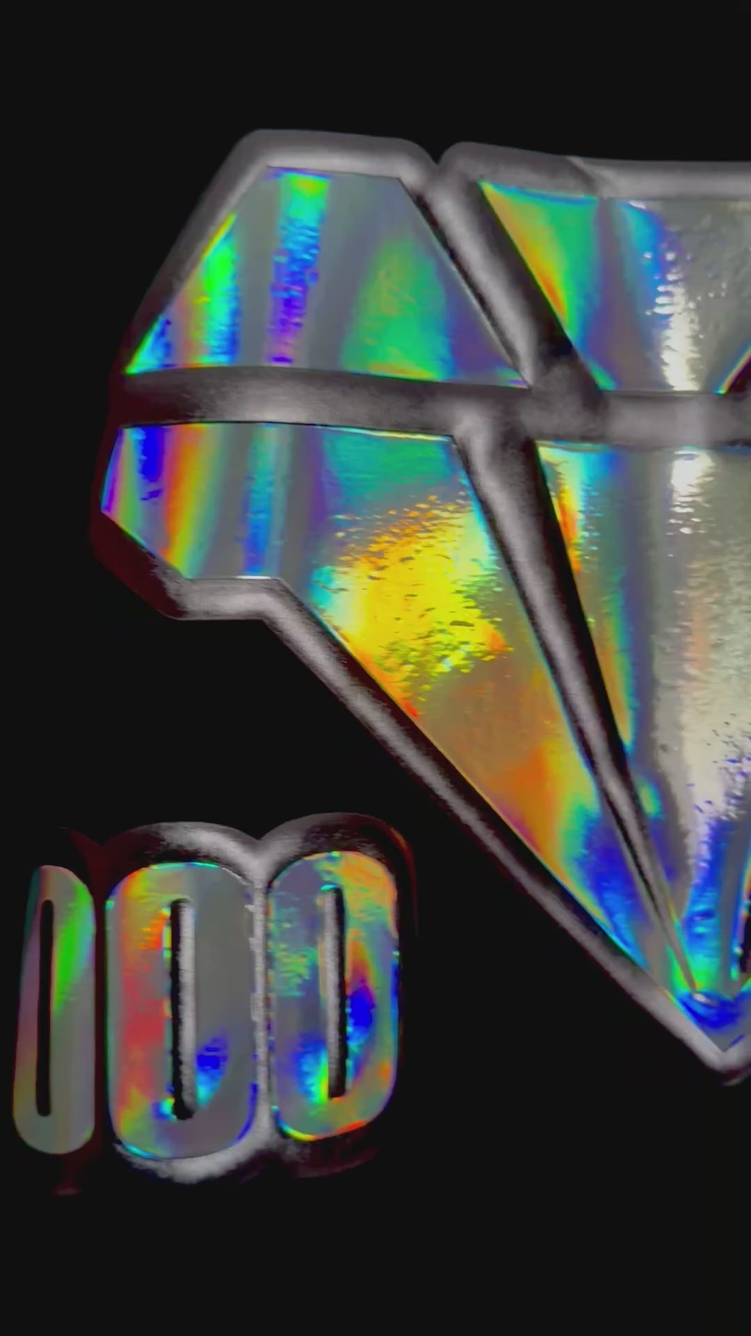 Prism light meets black chrome. A holographic diamond finished with a raised 3D black trim. Rare. Numbered. 1HNDRD®