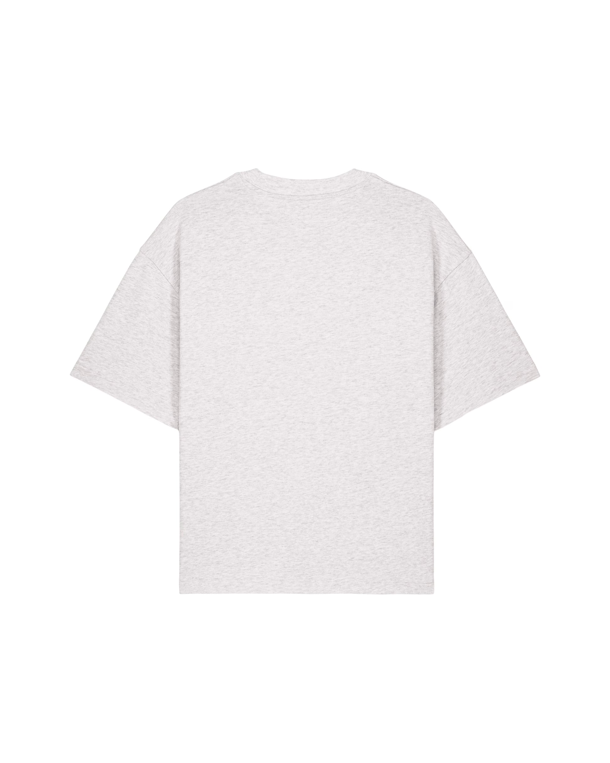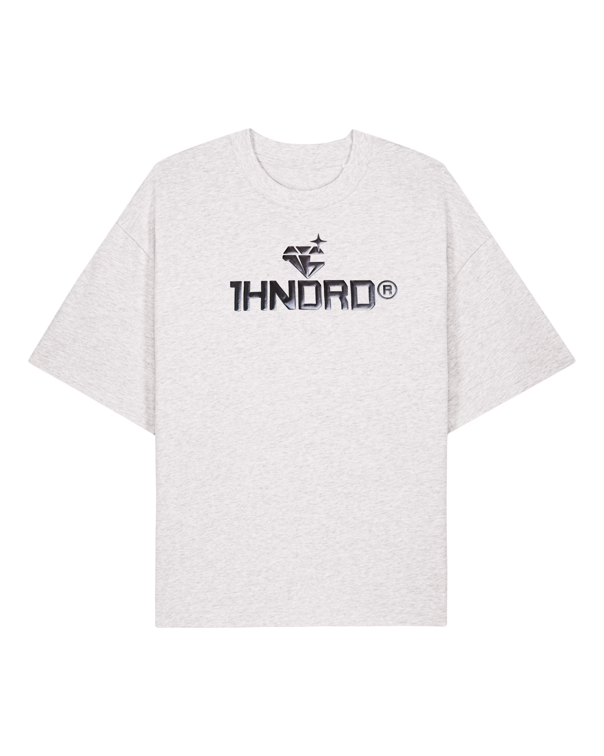Heather Grey heavyweight unisex t-shirt in a boxy fit with dropped shoulders. Raised Metallic Black Chrome 1HNDRD® logo on chest and plain back. Oversized for a street look.