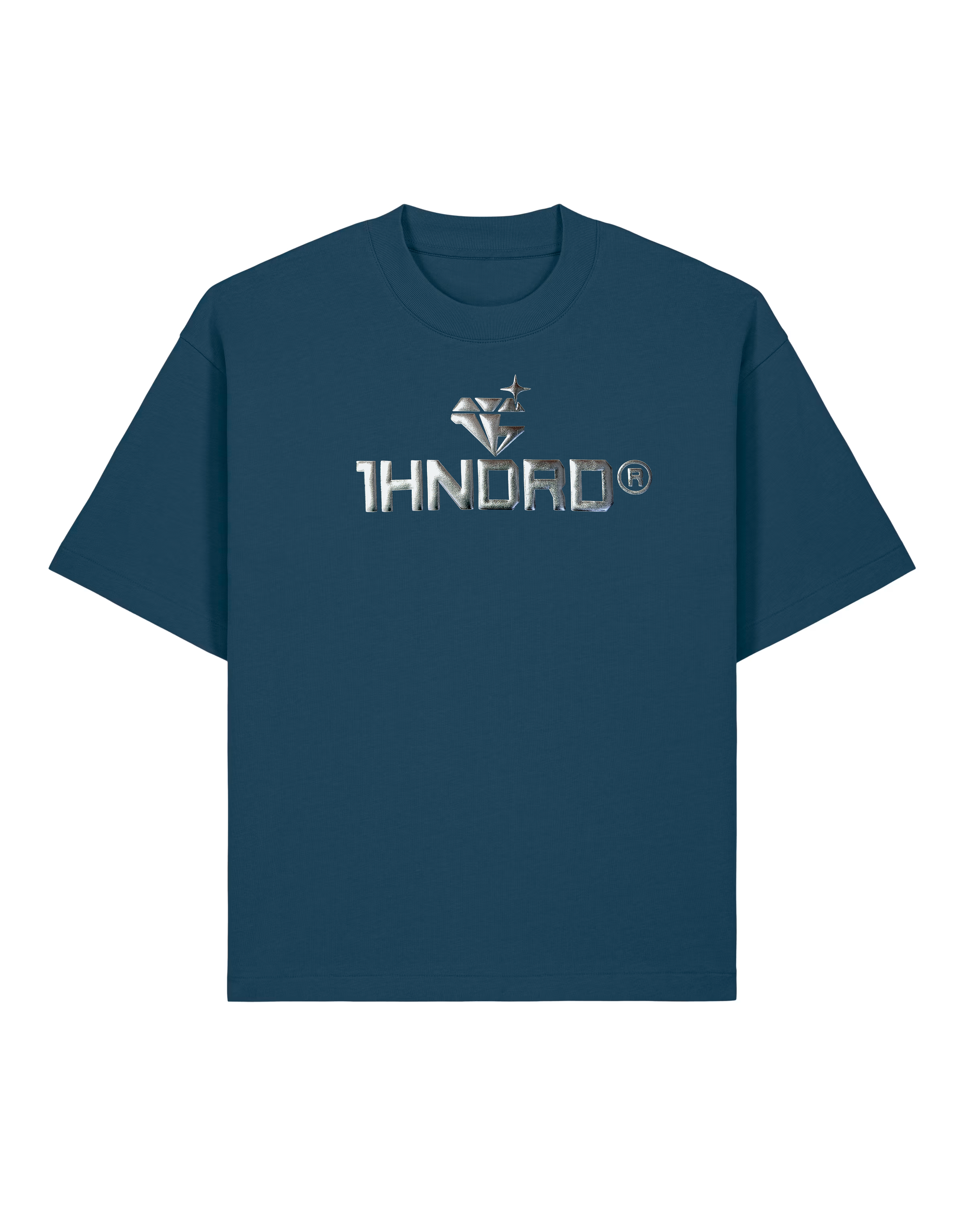 Teal heavyweight unisex t-shirt in a boxy fit with dropped shoulders. Raised Metallic Silver 1HNDRD® logo on chest and plain back. Oversized for a street look.
