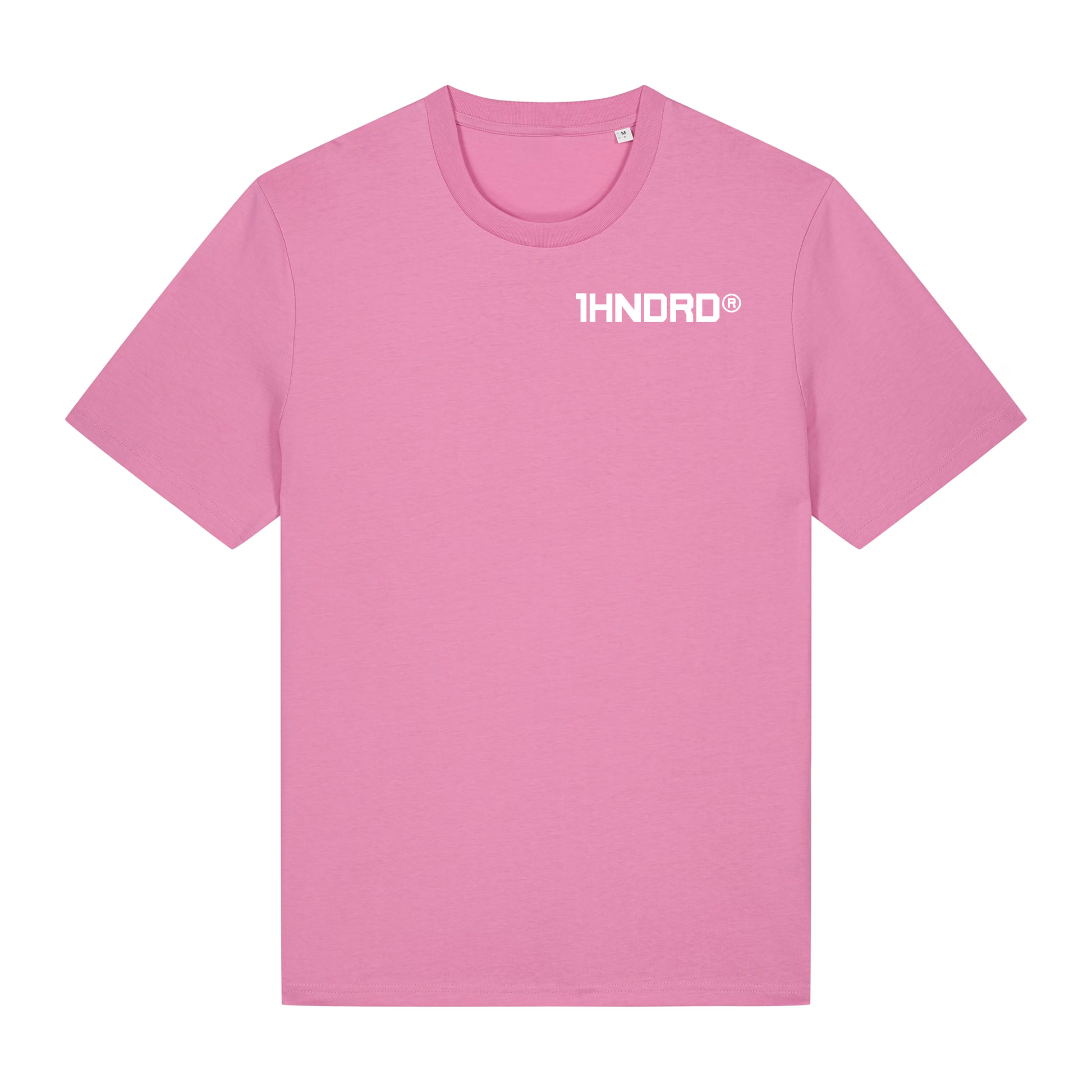 Women's Lightweight Pink T-Shirt featuring raised white 1HNDRD®logo.