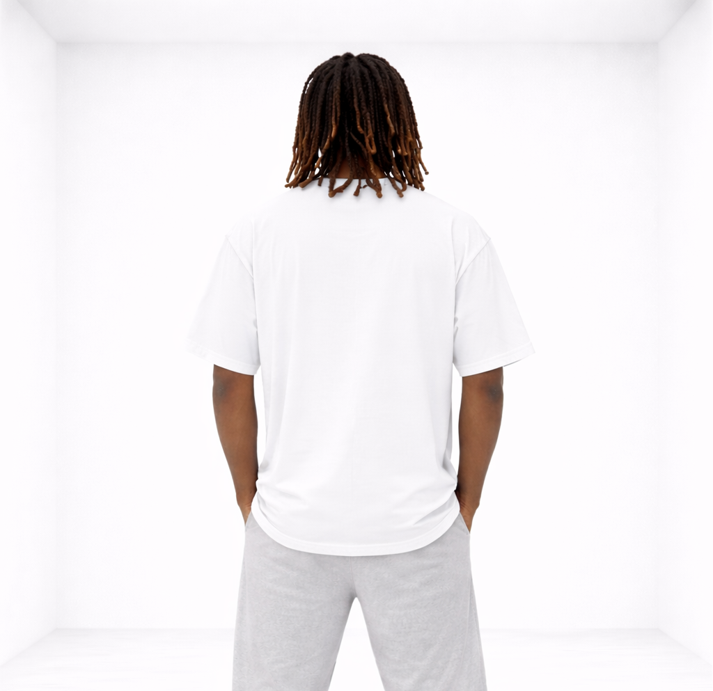 White heavyweight T-shirt in a boxy fit with dropped shoulders. Raised Metallic Gold Diamond 1HNDRD® logo on chest and plain back. Oversized for a street look.
