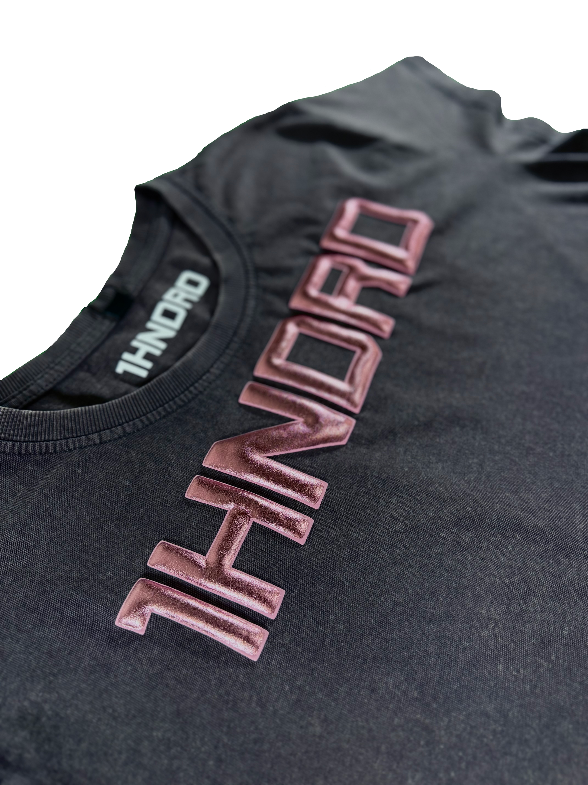 Women's vintage washed tee in a cropped length regular fit. A bold embossed metallic rose design across front.